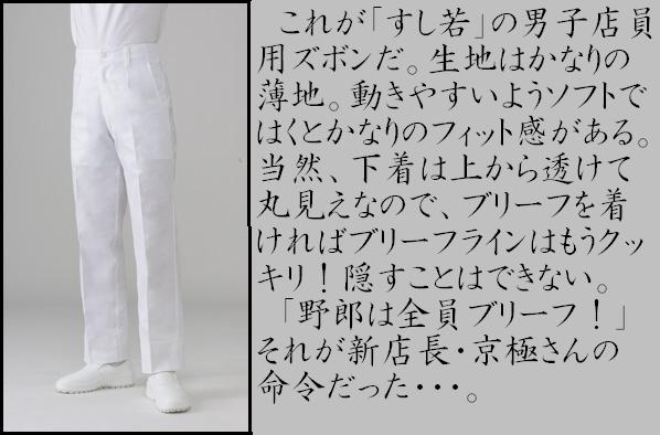 全身、白装束の板前服・・・そのズボンのケツの部分には、ブリーフラインがクッキリ浮き出しているのが、テレビの画面からでもはっきりと確認できた。